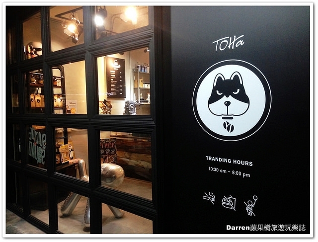 二哈單品咖啡館就在新光銀行大樓的後方位置非常好找,LOGO是一隻酷酷的哈士奇,表情有點KUSO
