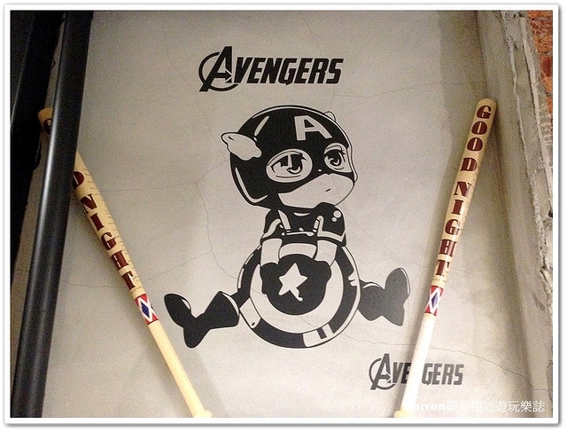 咖啡店內牆壁上有美國隊長及鋼鐵人,老闆應該很愛漫威英雄加上這個英雄造型讓店內更有話題