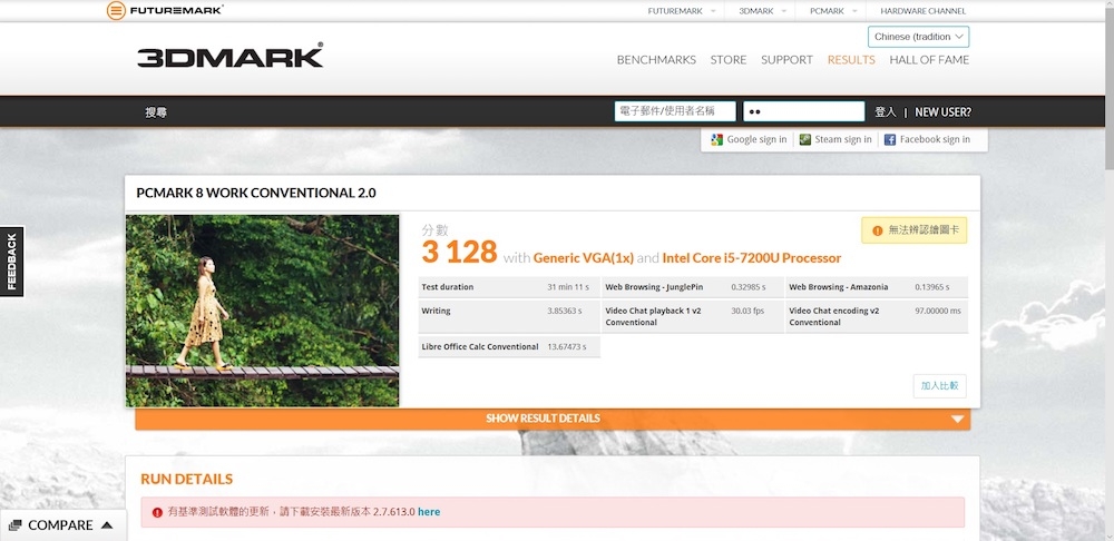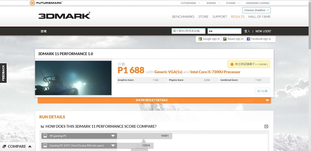 ASUS ZenBook 3 採用 Intel Core i5-7200U 處理器,以及內建 Intel HD Graphics 620 顯示卡,3D Mark 的跑分成績為 P1688 分。對於一些簡單的單機小遊戲,甚至是將所有需求調整至最低的英雄聯盟來說,這樣的處理器與顯卡規格,已經能順暢的執行。