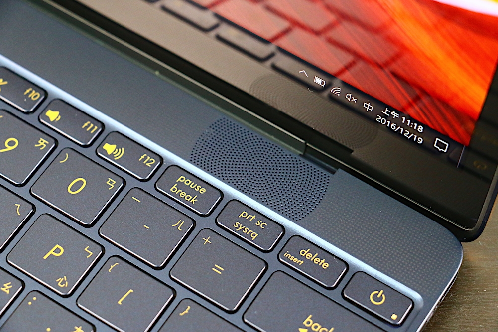 在 ASUS ZenBook 3 的 12.5 吋螢幕上方,配置了一個 HD 畫質的網路攝影機,而網路攝影機兩旁,則是用來收音用的麥克風。