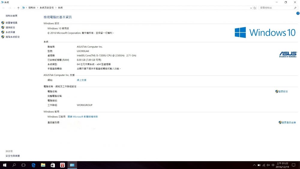 分享完外觀與配件後,接下來與大家聊聊 ASUS ZenBook 3 的軟硬體配置。ZenBook 3 採用的是 Windows 10 Home 64 位元作業系統,搭載 Intel Core i5-7200U 處理器,搭配 8GB RAM/512GB SSD 的記憶體與儲存空間配置,無論是一般文書處理,還是簡單的照片編修,都能有相當順暢的表現。