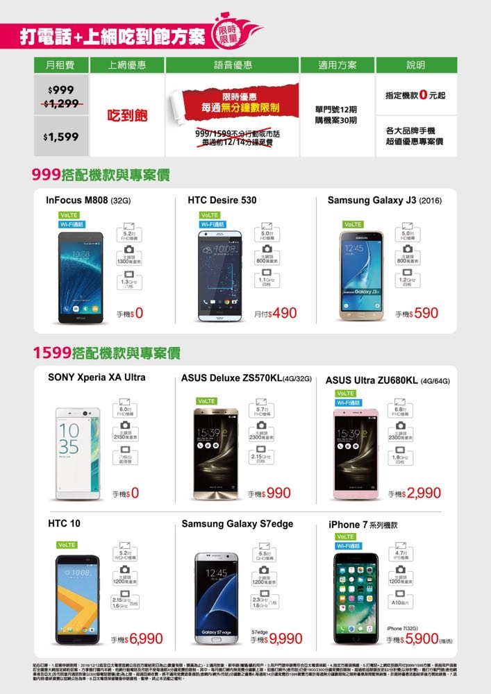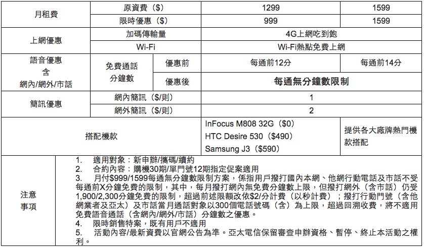 亞太電信表示,觀察 4G 時代的消費者使用行為,發現除了透過手機上網之外,仍有相當大的行動語音需求。歡慶「Gt智慧生活」兩週年,亞太電信「全國壹大網」特別推出打電話、上網全部吃到飽的超優惠資費方案,即日起至 2017 年 1 月底前申辦,打電話、上網全都吃到飽,最低特價只要月付 NT$999,便能享有行動電話撥打市話、行動、網內、網外,不限分鐘數全都免費,再享 4G 上網吃到飽!「語音全免費時代」正式來臨!