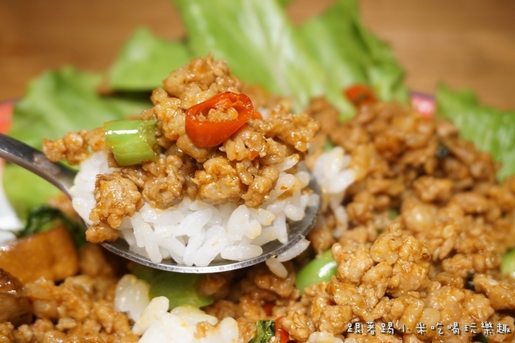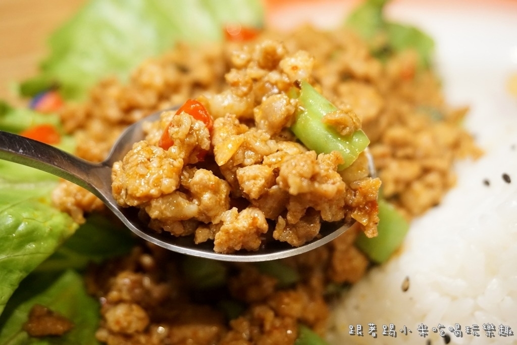 當然椰漿飯再配上打拋豬一起吃很完美, 第一次來這裡用餐的朋友小米先推薦你們試看看打拋豬唷