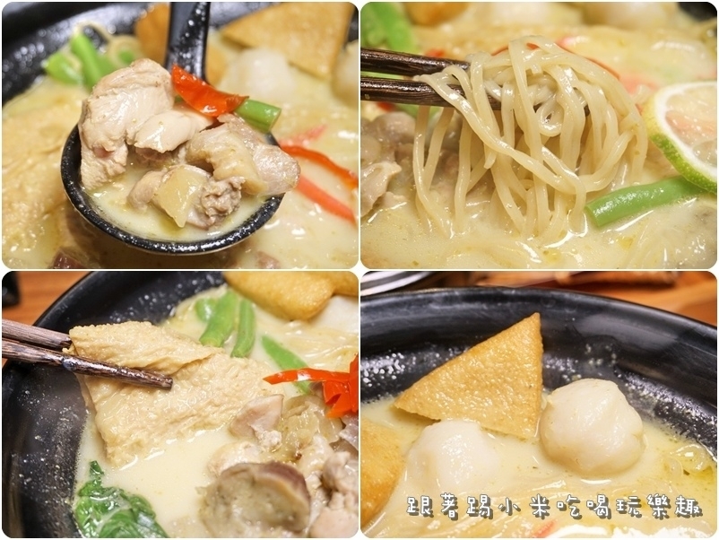 食材除了有軟嫩雞腿肉外, 還有油豆腐。墨魚丸。豆皮。豆角。茄子。蔬菜等, 都是很會吸湯汁的食材, 讓人每一口都可以感受到南洋咖哩香味. 喜歡吃這一味朋友小米也推薦給你唷