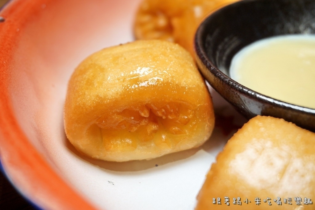 小白指定要點的黃金煉乳小饅頭 75元, 這是油炸迷你銀絲卷概念, 剛上桌時要注意一下, 因為超燙滴, 記得用筷子去夾, 不要像小米白木去用手去拿><