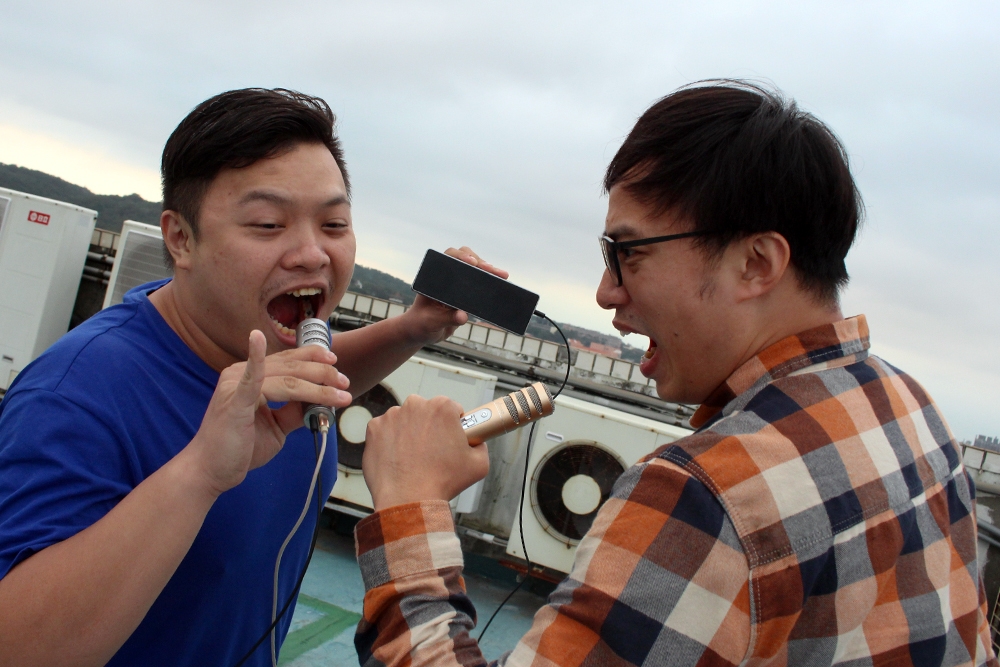 因為太方便了,所以平時很「壁俗」的同事二人組,決定在尾牙前用 idol K8 PLUS 隨身KTV包廂 來訓練歌聲。小恰跟小胖一直有個夢想就是組歌唱二人組(大誤)