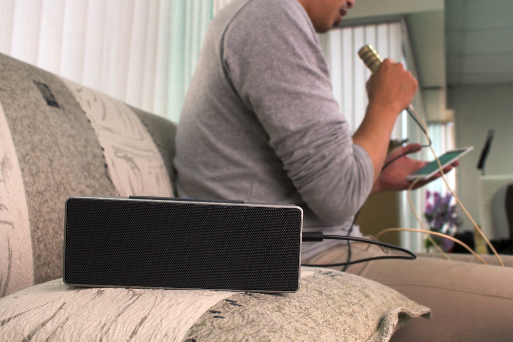 除了可以連接耳機外,還可以連接隨身音響,讓大家都能聽到你美妙的歌聲。