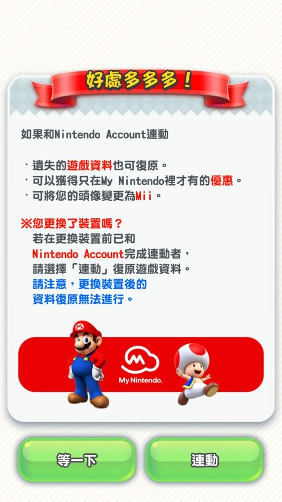 4) 要注意的還有《Super Mario Run》確定無法離線遊戲,因此若是想要玩的朋友一定要注意自己的網路資費唷。