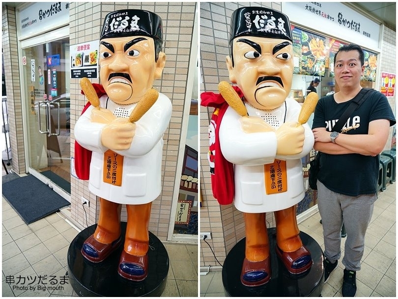 ▼門口的吉祥物達摩大臣也就是現任的CEO上山勝也,也是串炸達摩的第四代啦!不過大口可是第一次看到吉祥物這麼凶神惡煞,手上拿著串炸還比著類似X的樣子,原來是在提醒大家「二次沾醬禁止」這個原則,待會在店裡也會看到許多提醒標語唷!