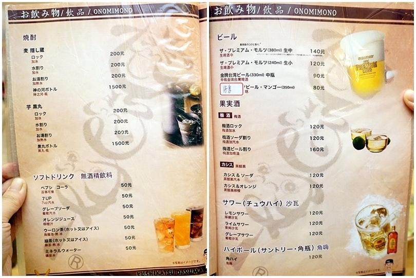▼另外還有超多酒類與無酒精飲料都可以點來搭配,在日本可是大家都會點上一杯啤酒或其他酒類搭配串炸一起享用,滋味超棒唷!(未滿十八歲請勿飲酒)