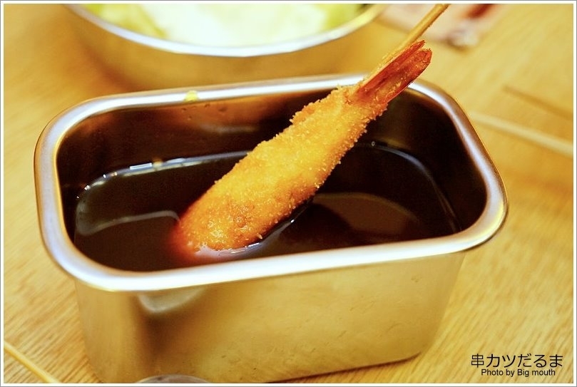 ▼蝦子串炸,大口建議第一次沾醬可以將整隻都浸下去再拿起來,如果想吃點原味口感的朋友也可以選擇後頭不要沾醬,就能一次品嚐到兩種不同風味了!