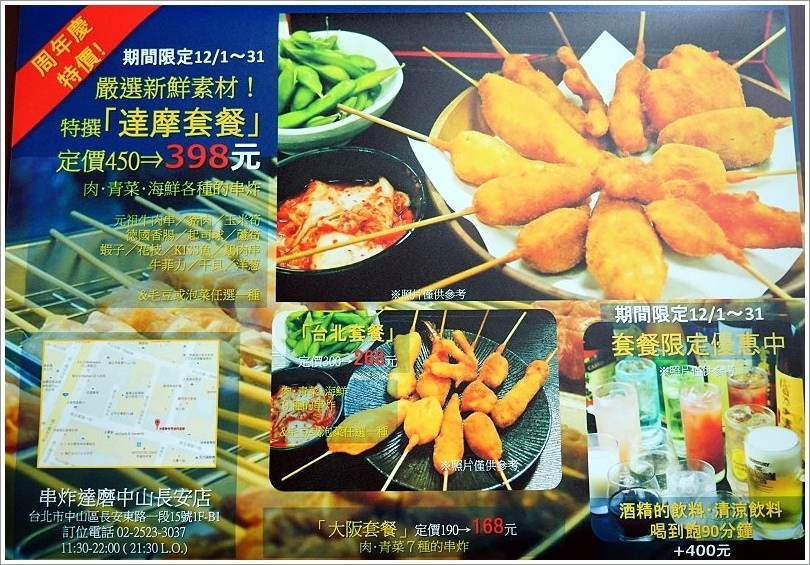 ▼為了歡慶周年慶,所以即日起至2017年1月底前點達摩套餐或大阪套餐都有優惠價(活動詳情以店內公告為主),喜愛的朋友記得趁這段時間趕快來品嚐唷!