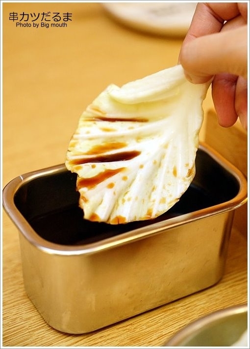 ▼生高麗菜搭配醬汁吃起來好清甜美味,搭配串炸超清爽的啦!另外一個強大功能就是可以用高麗菜舀醬汁到串炸上,這樣就不用擔心萬一醬不夠又不能沾兩次醬汁怎麼辦!真是太聰明了~