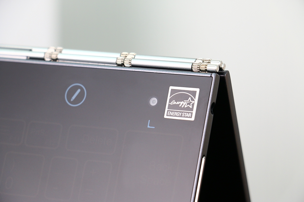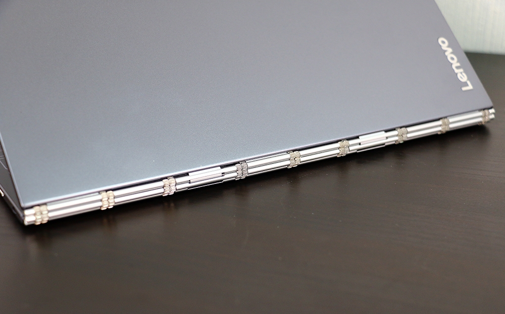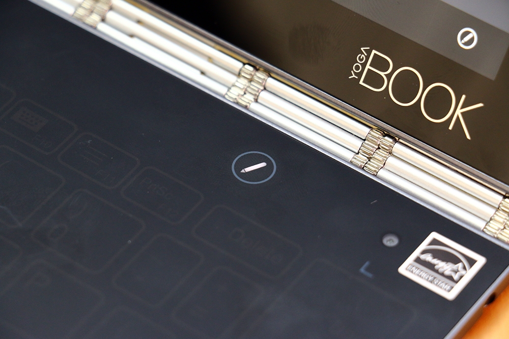 機身轉軸是 Yoga Book 一個很漂亮的設計,延續 Yoga 系列筆電的獨家錶鏈式轉軸,這絕對是結合筆電與平板的關鍵,交界處設計得很精準漂亮,進行 360 度螢幕翻轉時也十分順暢。