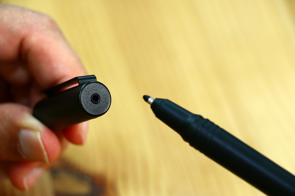當然在觸控螢幕上創作已經不稀奇了,這裡可以替換掉原廠所附的觸控筆芯,換成有墨水的筆心芯,更換方式就是透過筆蓋的小孔做取出替換的動作。