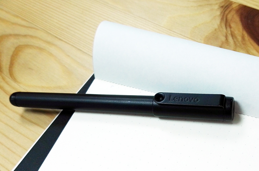 接下來我們來聊聊筆的部份,這對 Lenovo Yoga Book 來說是很創新的設計,讓創意工作者也能更輕鬆的進行創作草稿,甚至是直接做好完稿上傳的動作,這都要歸功於和 Wacom 技術合作的觸控筆,具備 Wacom EMR(電磁諧振)技術並有 2048 階感壓,一般來說觸控筆技術分為需要電池的 AES pen 和不需要電池的 EMR pen,而 Yoga Book 則是屬於後者,不需要再另外替觸控筆進行充電,當然也不需要電池。