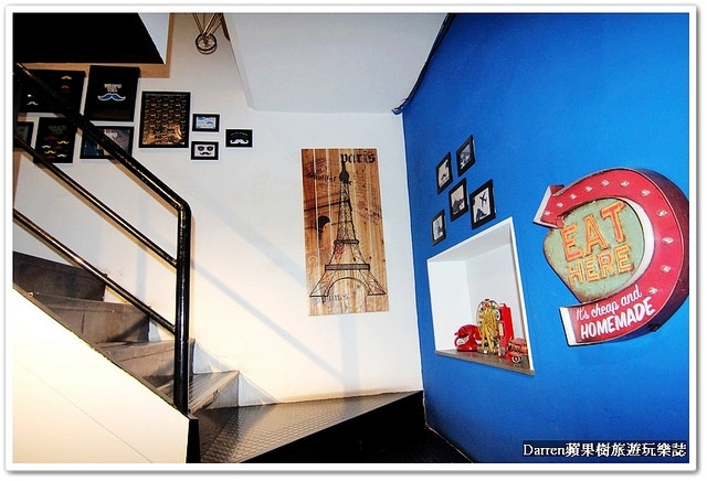 通往二樓的空間設計成美式工業風,很適合在這裡拍照當背景