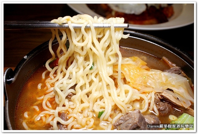 整個牛肉鍋有點類似韓式拉麵鍋加上牛肉的作法,吃拉麵就有種吃韓式料理的港覺XD