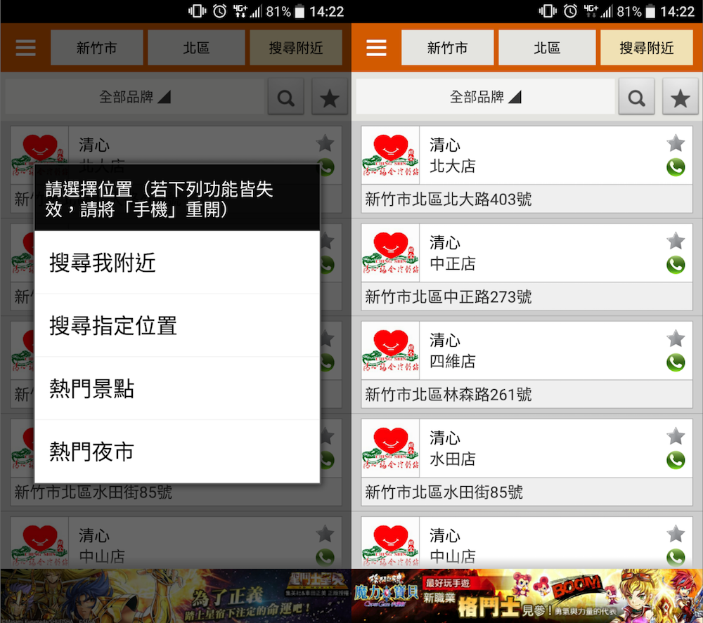 除了上述的各縣市搜尋以及搜尋附近兩種搜尋方式之外,食在好茶 App 還另外提供熱門景點以及熱門夜市的飲料店搜尋方式,不管哪個景點或是大小夜市,都能幫助使用者找到附近的飲料店。
