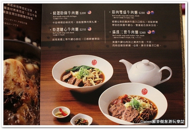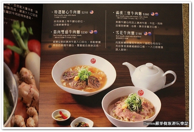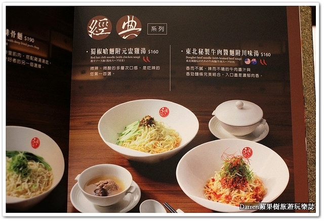 MENU上面都有圖片和介紹可以迅速知道品項外觀很方便,牛肉麵分成川系、蘭系、牛排等系列