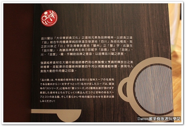 品川蘭是結合牛肉麵發源地「四川」及清燉味產地「蘭州」作為命名概念,強調純粹食材經慢火熬煮後釋放出的美味精華