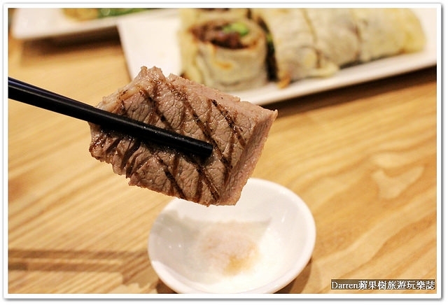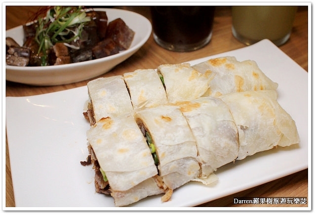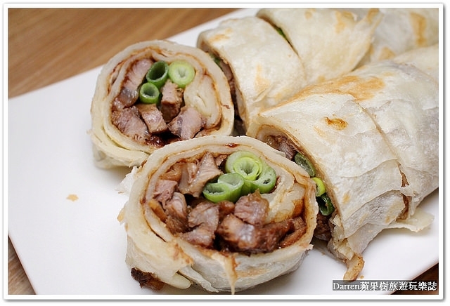 從上面看起來有點像牛肉捲餅,餅皮吃起來有嚼勁外皮烤到酥柔微脆,越嚼越能吃到麵皮香氣