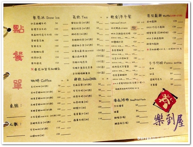 樂到屋MENU,有雪花冰、輕食、早午餐、鬆餅、咖啡,簡單說吃巧也可以吃飽