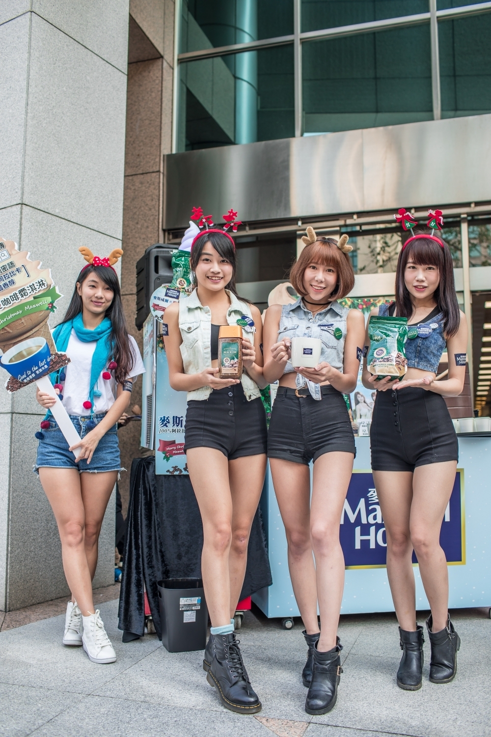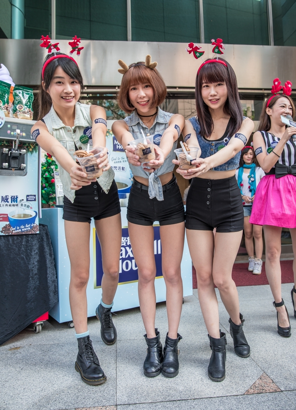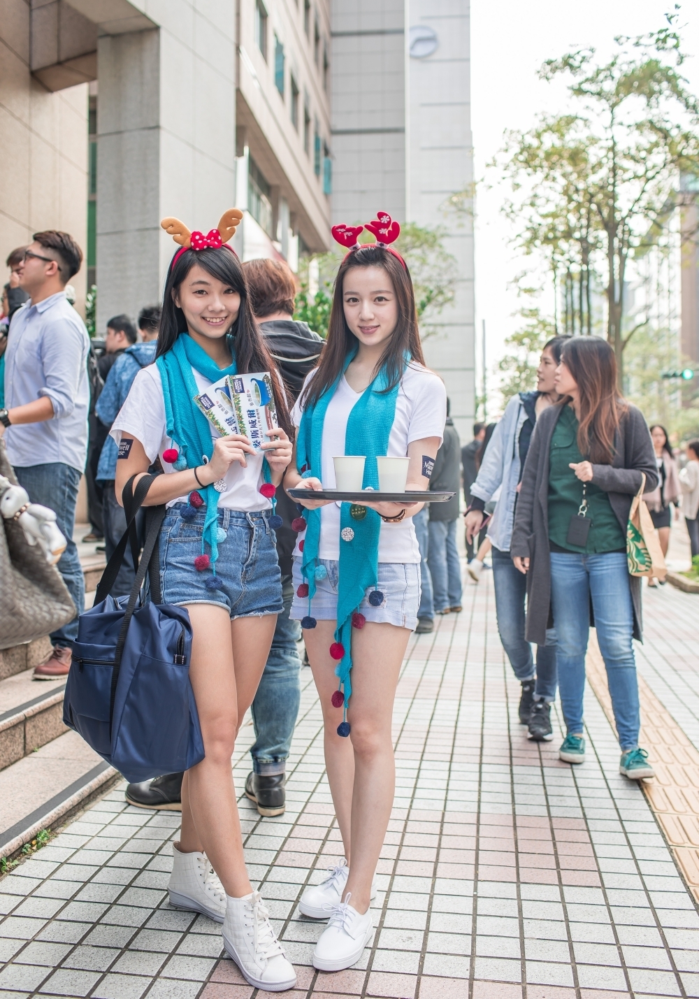 終於十二點一到,現場就有三位活潑漂亮的咖啡大使出現哩