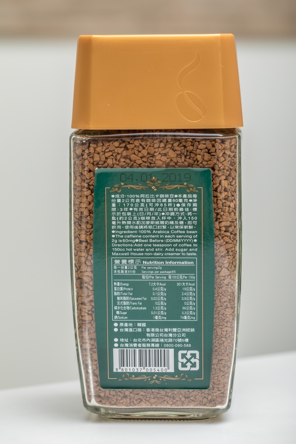 所有的標示都相當清楚,這也是一瓶即溶咖啡必須要做到的基本條件