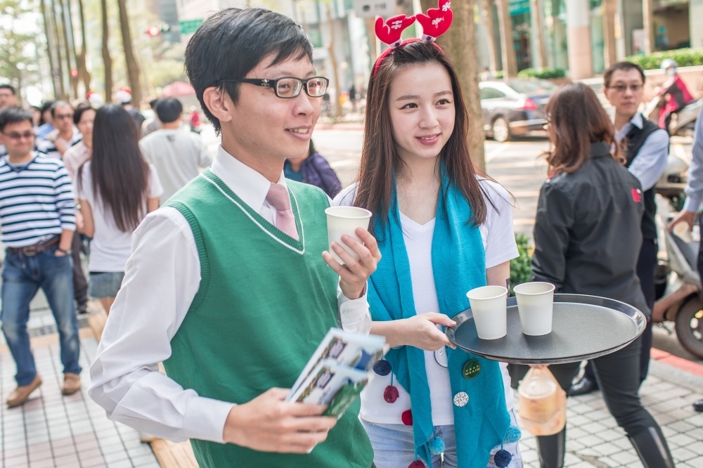 趁著伊梓帆跟現場男生互動時,麥斯威爾咖啡大使也開始分送咖啡給周邊的上班族