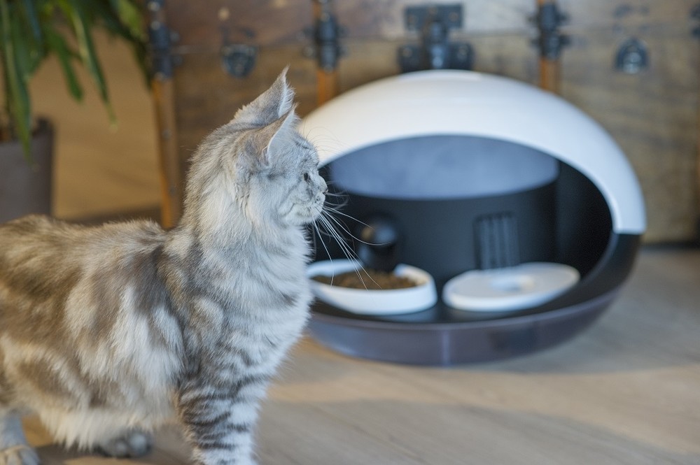 在與手機互聯的 APP 上就可看到這些紀錄資料,來觀察貓咪是否有正常飲食。另外如果家中不只有一隻貓,他也可以利用貓上面的晶片來感應是哪一隻貓來用餐,並記錄其資料。