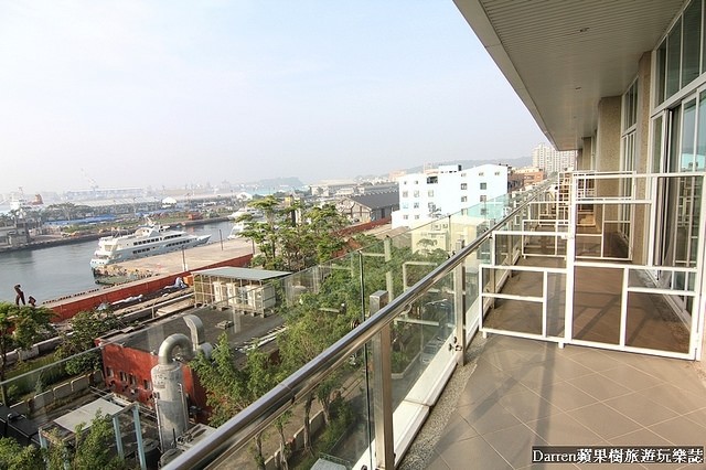 太好睡難得一覺到天亮,外面有陽台可以看見清晨的高雄港灣