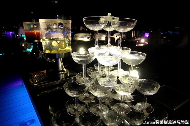 SKY BAR中間有個燈光會變化的在夜晚特別有情調,在旁邊還有沙發不少情人坐在那邊放閃