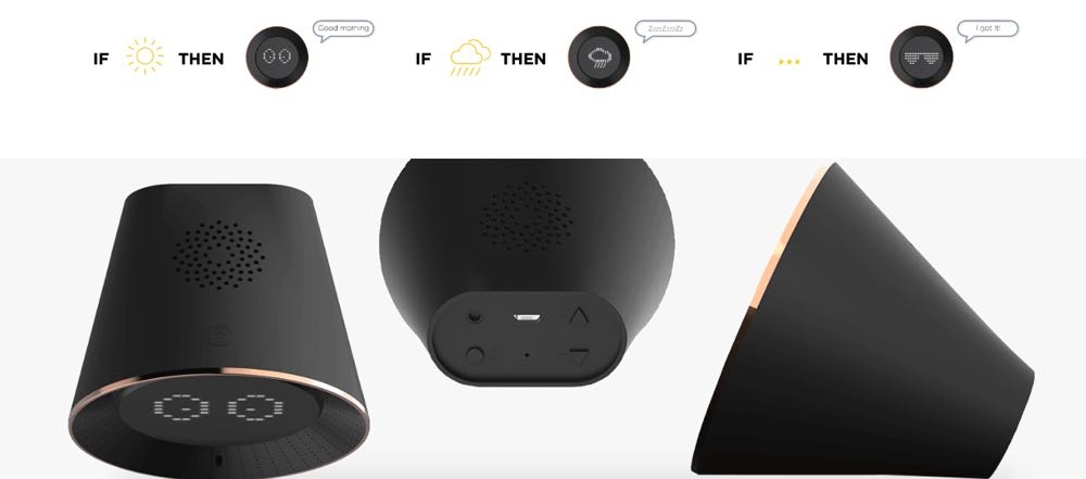 Vobot Clock 在外型上的確跟一般的時鐘無異,有著簡單的液晶螢幕來顯示時間,但仔細一看可以發現這款時鐘除了螢幕以外,並沒有任何的按鈕設計,因為我們可以直接對他用「說」的。