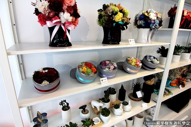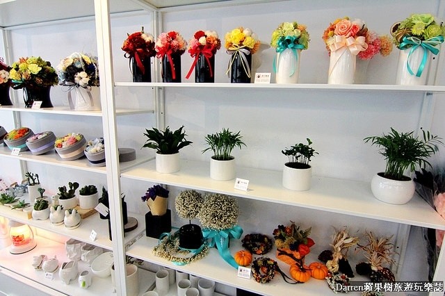 二樓的陳列架上展示不少花藝作品,這裡的花材都不能拿取如果要買需請店員