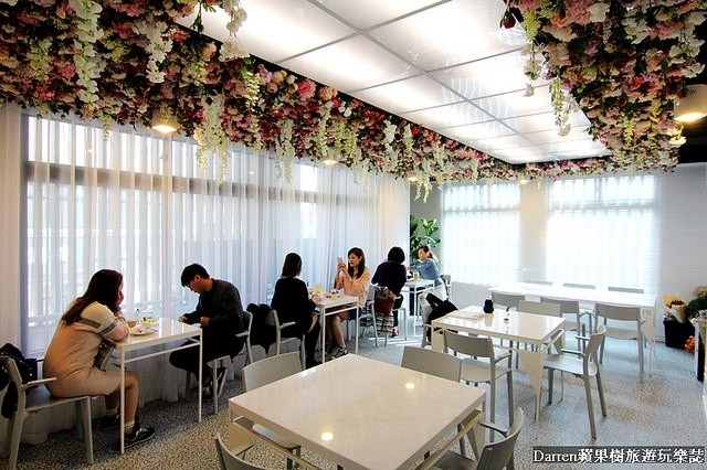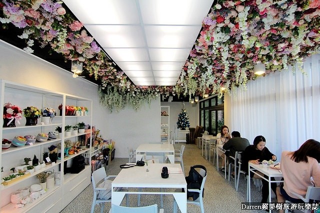 二樓的用餐環境在天花板有滿滿花朵超適合拍照打卡,旁邊也有許多乾燥花材,根本就是女孩們的拍照天堂