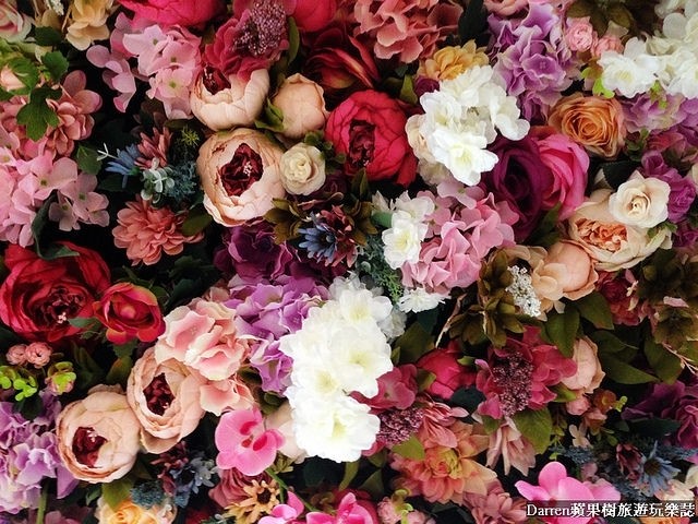 抬頭看滿滿的花朵超繽紛很像花園,如果可以連牆面都是相信會更好拍照