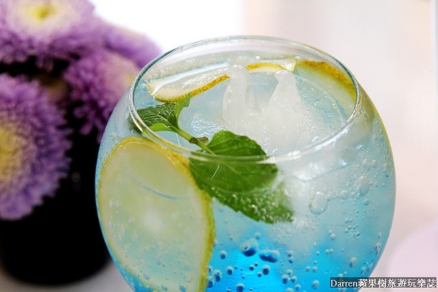 藍柑橘汽泡飲簡單來說他們家從裝潢到杯子器品都很有美感,我點的氣泡飲上面還有很可愛的企鵝冰塊