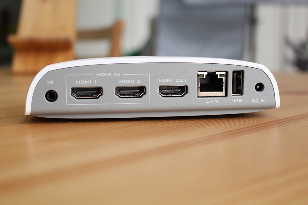 主要是完善支援了 4K 解析度 60fps 流暢播放,在輸入與輸出介面方面,除了一個 HDMI OUT 輸出之外,內建了兩組 HDMI 輸入,方便我們可以在子畫面預覽以及主畫面間切換,接上遊戲機或有線電視機上盒都沒有問題,這也是一般電視棒或電視盒少有的功能。支援 WiFi 高速無線傳輸並提供網路孔讓我們能直接透過網路線提供穩定的網路品質,另外還有一個 USB 連接埠供我們讀取相關影音資料或照片,算是相當完整的。