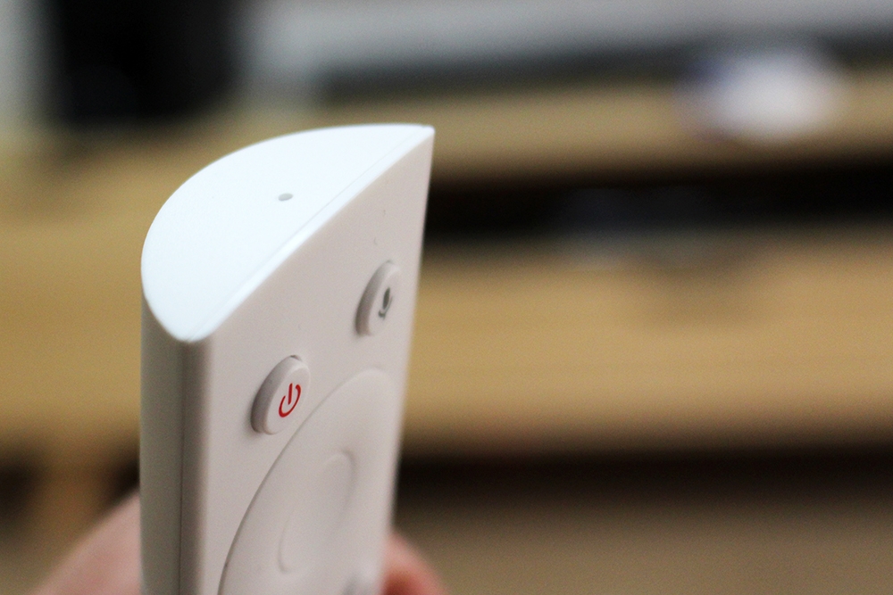 對著藍牙遙控器的麥克風這邊說就可以了。