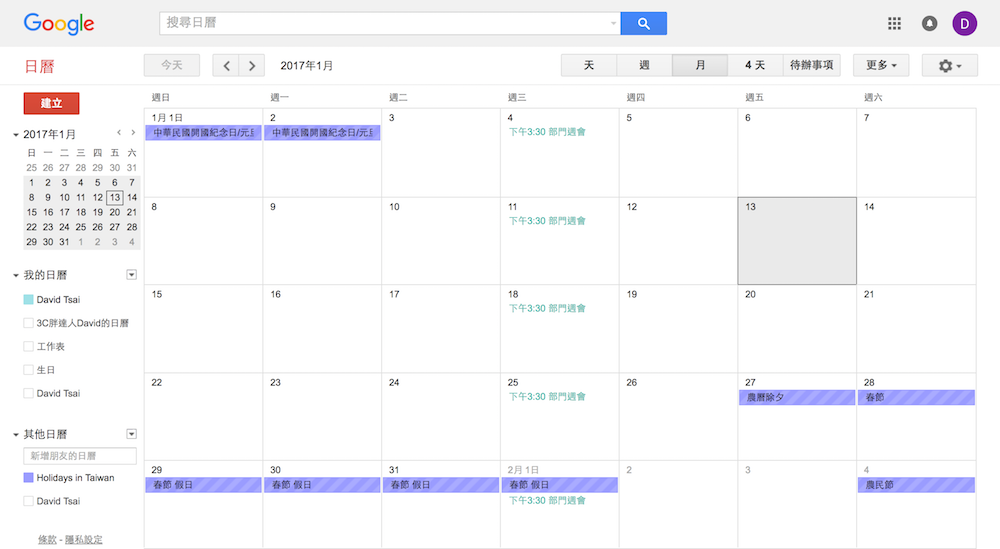 手動開啟 Google 日曆的農曆功能後,可以看到每天的日期旁邊會多出農曆的提示,甚至連民俗節慶、季節變化都會顯示在日期旁邊,讓使用者能一目了然。如果,下次家中的長輩在問說怎麼用 Google 日曆看農曆,不妨依照以上步驟教家中長輩設定吧。