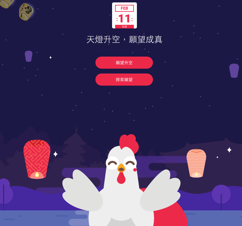 元宵節延續農曆過年的熱鬧氣氛的節日,又有「小過年」之稱。而放天燈則是台灣元宵節的民俗盛事之一,透過冉冉升空的天燈將願望傳遞、祈福消災。為了傳承這項文化、提倡環保概念,Google 特別邀請使用者於元宵節這天在 3D 數位天燈上,寫下給親友的祝福與新年願望,並透過社群平台分享。透過科技施放天燈,不僅能給遠方親友送上祝福,又能跨越地域限制,一舉兩得!