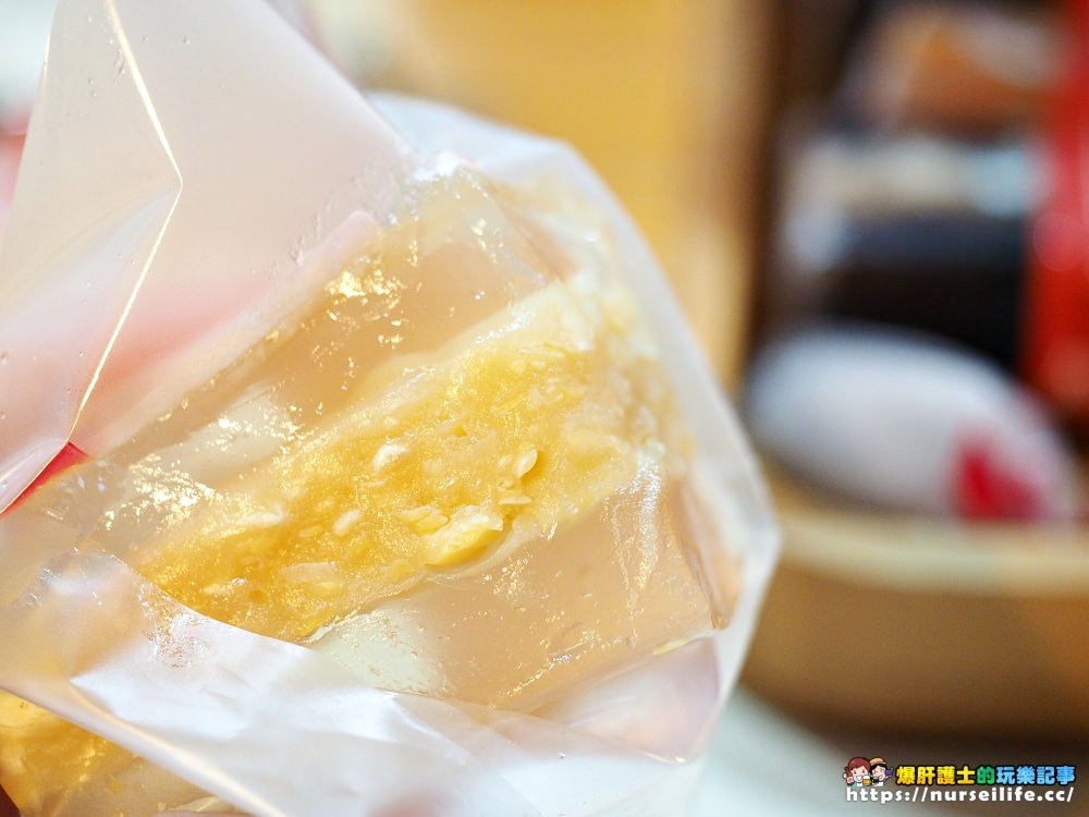 水晶南瓜–但一路吃下來,最妙的就是這水晶南瓜了,竟然可以在水晶糕吃到南瓜口味,這一整個太妙了,如果可以爆肝真的很想要建議老闆做小一點,餡太多太紮實,對於想要多樣化多吃一點的外地遊客來說,這真的有點勉強,想要外帶又怕這個沒防腐劑的水晶糕在路上就先升天走人了,放在肚子是最安全的方式,但也是最艱難的一個選擇。