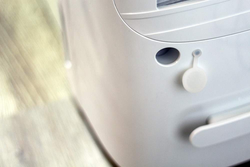 除了和一般除濕機一樣有提供水箱倒水的功能之外,背面左下方還設計了排水孔,接上箱子內附的1.5公尺的水管,再設定為連續排水模式即可以連續排水,不用一直倒水。
