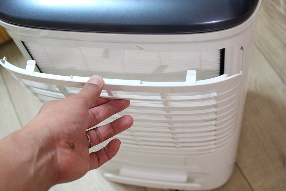開除濕又能同時享受好空氣的秘密就在機身後面啦!大大的進風口裡面包含了一層預過濾網及 HEPA 級濾網,有快拆設計方便我們自己進行更換HEPA濾網,預過濾網可以很簡單的拆下來水洗。