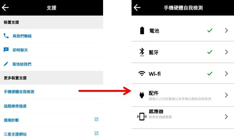 這次 mySamsung 更新後,新增了手機硬體自我檢測的項目,可讓你隨時知道手機硬體狀況,若有任何問題也可以透過客服支援來尋求協助。