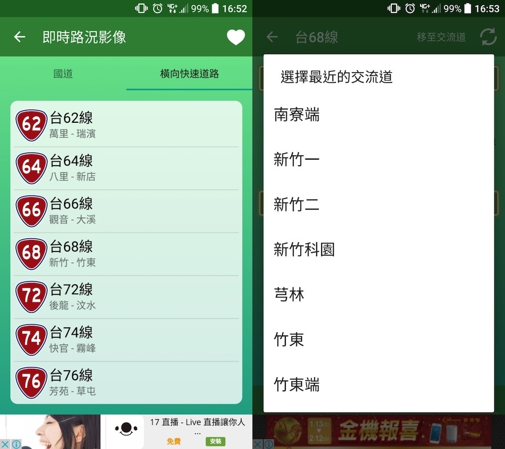 一開始有提到,國道路況即時通支援即時路況影像功能,駕駛朋友可以點選交流道名稱旁邊的監視器畫面,來進行即時路況影像檢視的動作,確認交流道是否有塞車狀況發生。