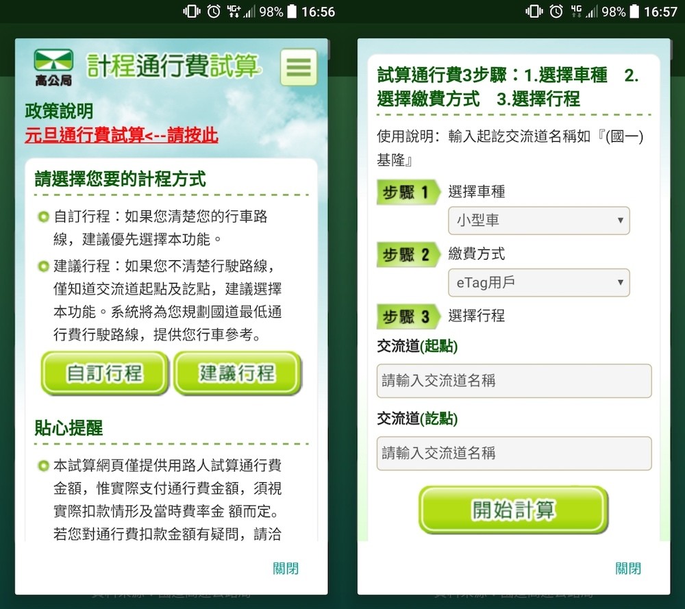 國道路況即時通另有提供 ETC 計程通行費試算格式,駕駛朋友只要設定好上述的資訊後,計程通行費試算功能就能替你算出這段里程總共要收取多少通行費,讓駕駛朋友事先知道通行費大約會花費多少金額。