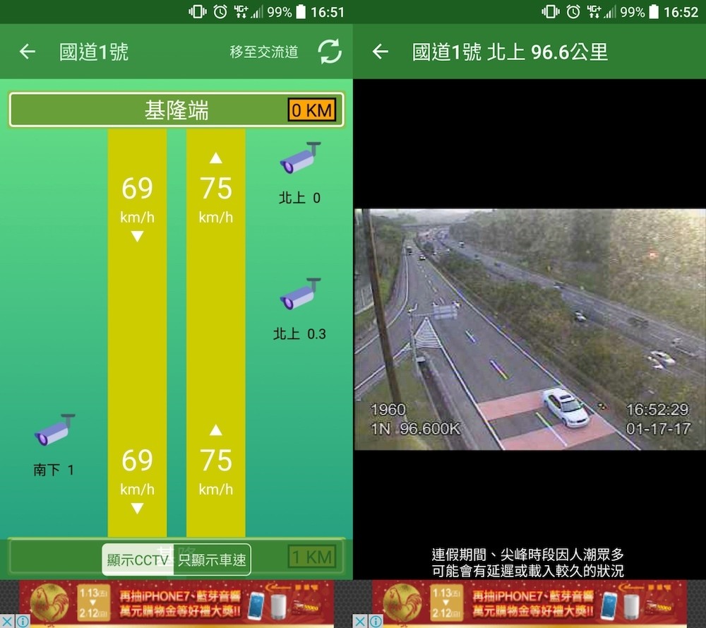 過年期間出遊,除了馬路三寶會變多外,塞車狀況更是過年必見場景,這款國道路況即時通 App 剛好可以讓駕駛朋友過年出門時提早避開塞車路段,讓旅程可以更加順暢。但還是要提醒大家,建議出門開車前使用,千萬不要邊開車邊使用 App 檢視路況,若出門真的忘記檢視路況,請將手機交給副駕駛座的家人,由家人代為檢視,才不會造成交通意外,也能確保行車平安。最後,也向大家拜個早年,祝大家新年新氣象,身體健康,平安順心。
