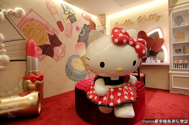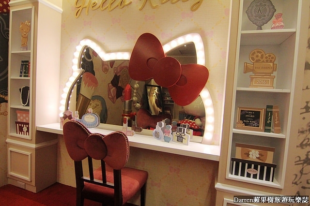 最受歡迎的就是Hello Kitty的化妝間很多人都搶著和粉嫩Kitty公仔拍照